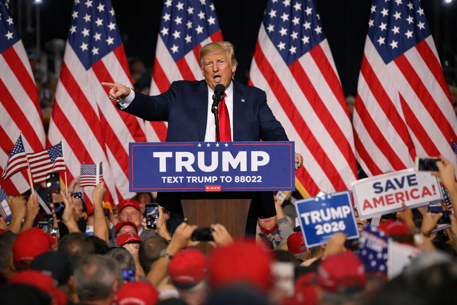 At recent rallies, thousands of supporters filled large venues waving American flags and wearing the well-known red “Make America Great Again” hats. The atmosphere at these events reflects the strong loyalty many voters still feel toward the former president.